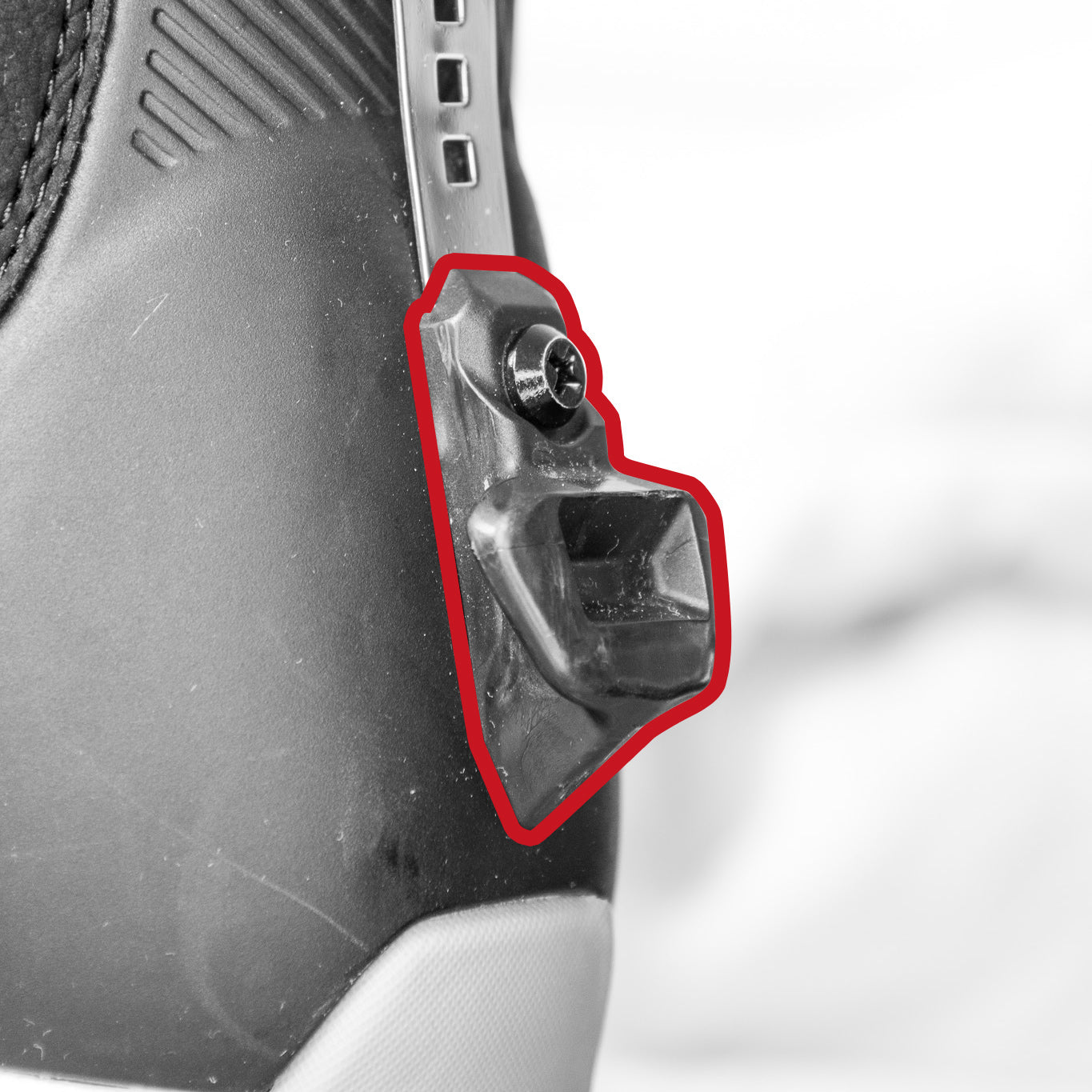 The Heel Clip automatically locks the boot into the binding by securing the Heel Cleat in place. Similar to a ratchet buckle on a traditional binding.